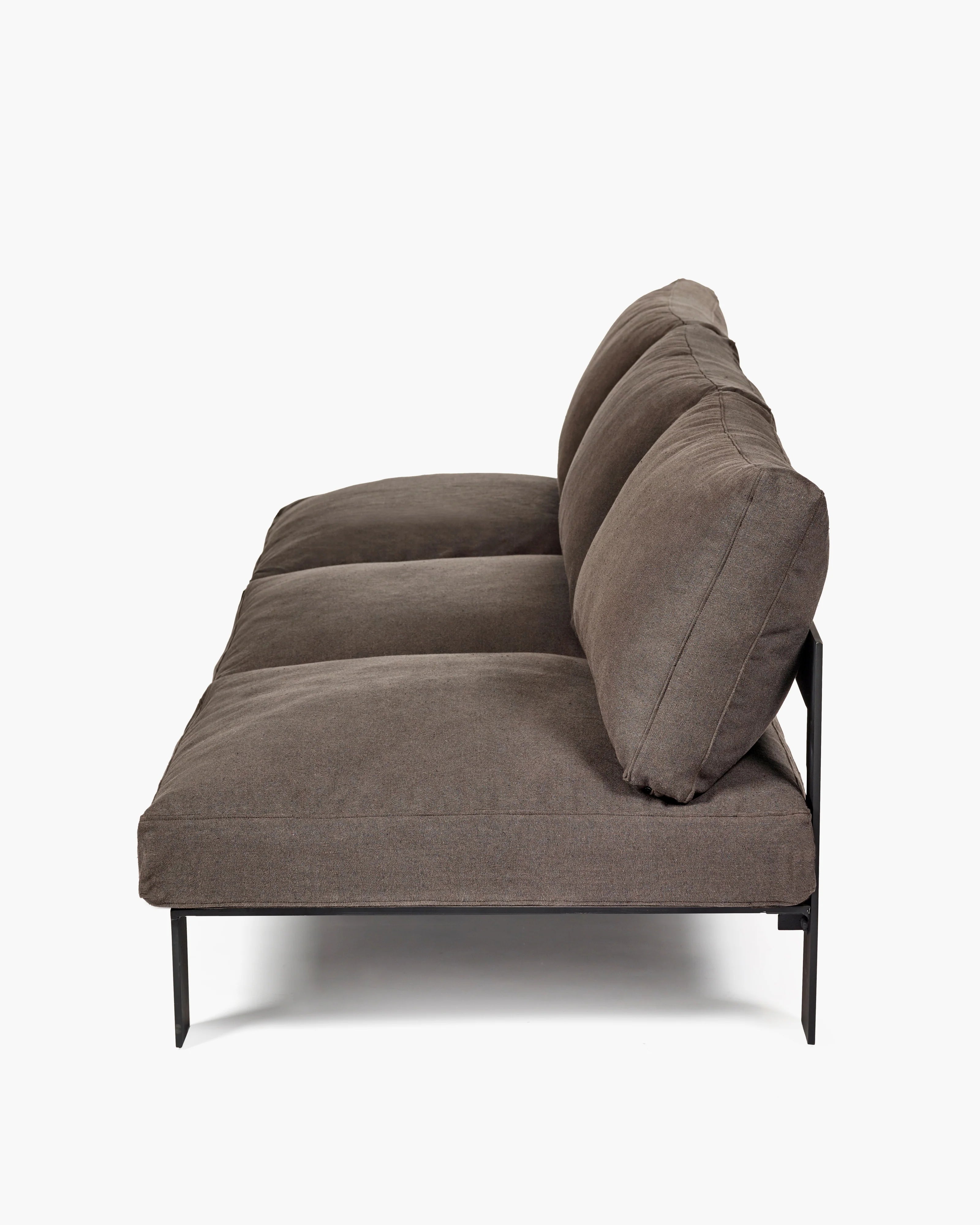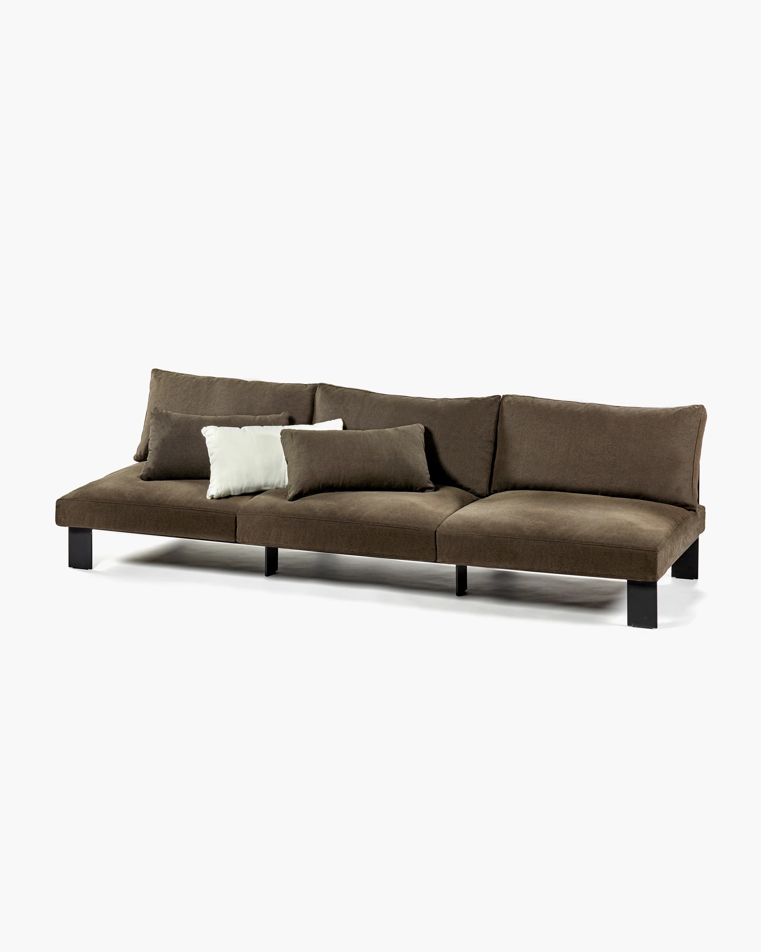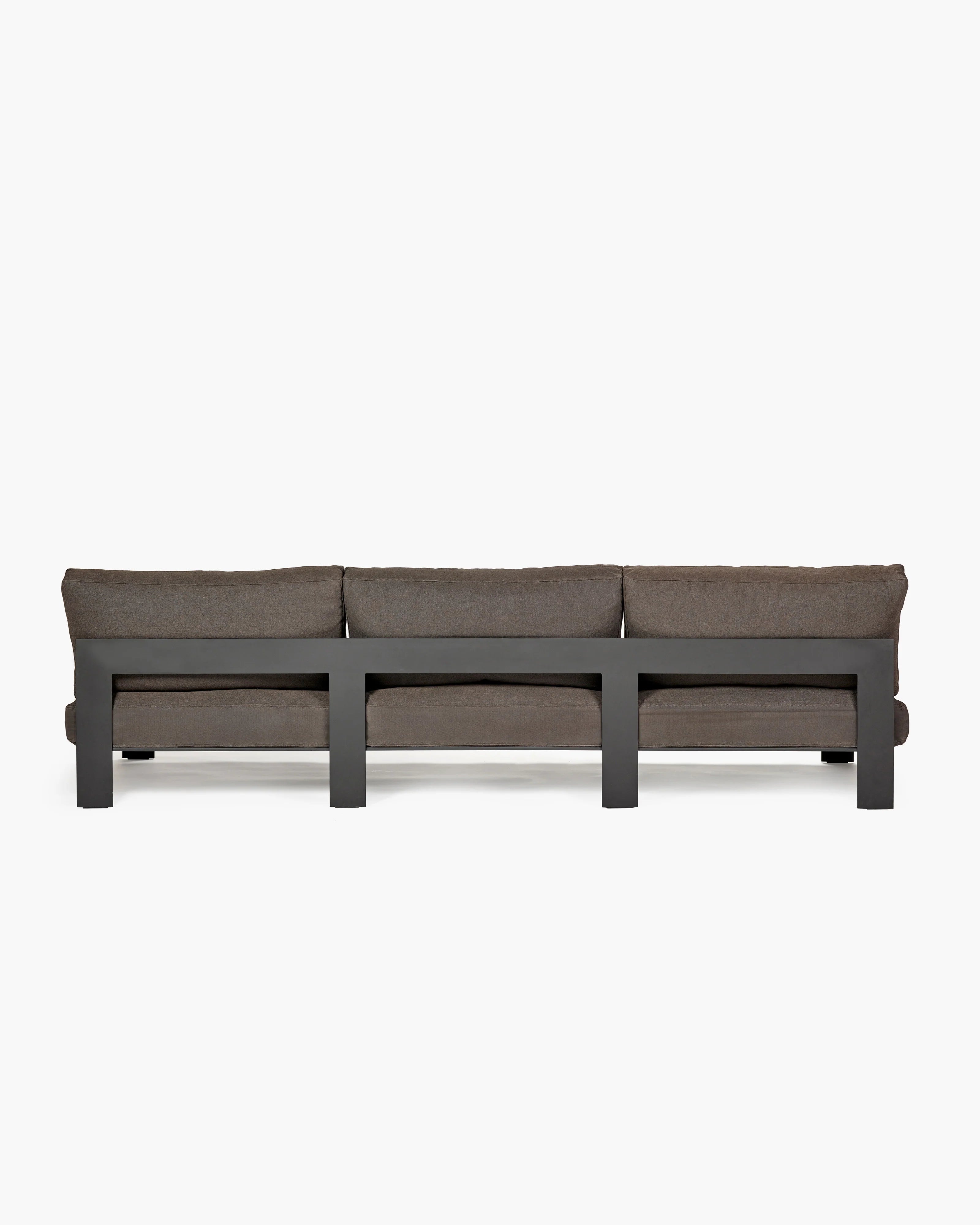 De sofa-collectie bestaat uit een 1-, 2- of 3-zitsbank, een hoekelement en een hocker. Zo stel je moeiteloos jouw ideale droombank samen. Het zwarte aluminium frame is eenvoudig te verplaatsen en wordt geleverd inclusief zachte kussens, geschikt voor zowel indoor als outdoor gebruik.