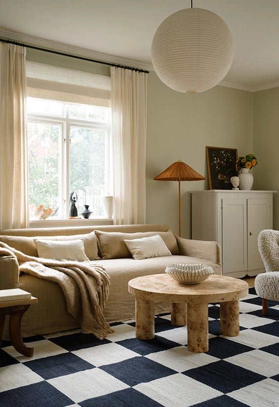 De Chess Wool Rug heeft een klassiek ruitpatroon dat zich thuisvoelt in verschillende interieurstijlen. Een tijdloos vloerkleed, met de hand geweven van 100% Nieuw-Zeelandse wol, waardoor het zowel zacht als duurzaam is. De vlakgeweven techniek maakt het ook geschikt als vloerkleed onder bijvoorbeeld een eettafel. Kom de tapijten bekijken in onze showroom.