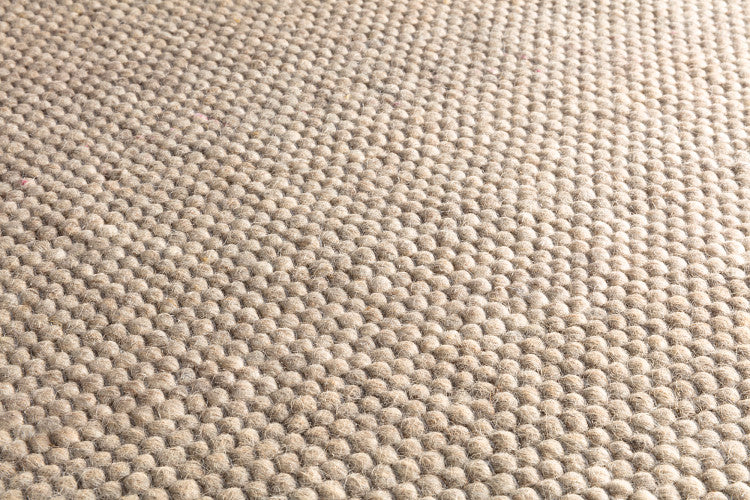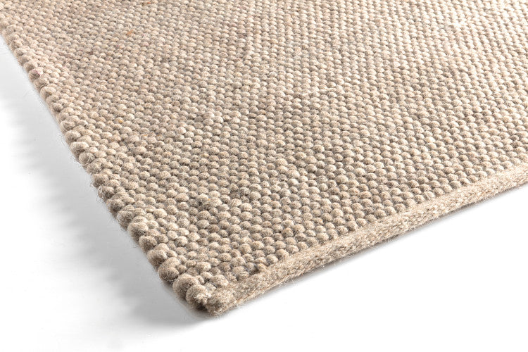 Een vlak en warm vloerkleed van 100% wol in diverse natuurlijke tinten.